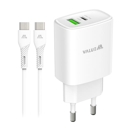 [밸류엠] PD 25W 2포트 초고속 가정용 충전기(C to C/25W 케이블)